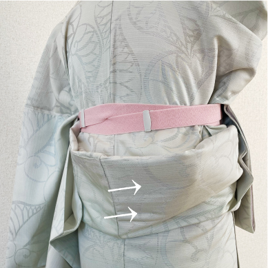 とくに“柔らかもの”の場合は、きものの自重で落ちやすいのでしっかり上げること意識。