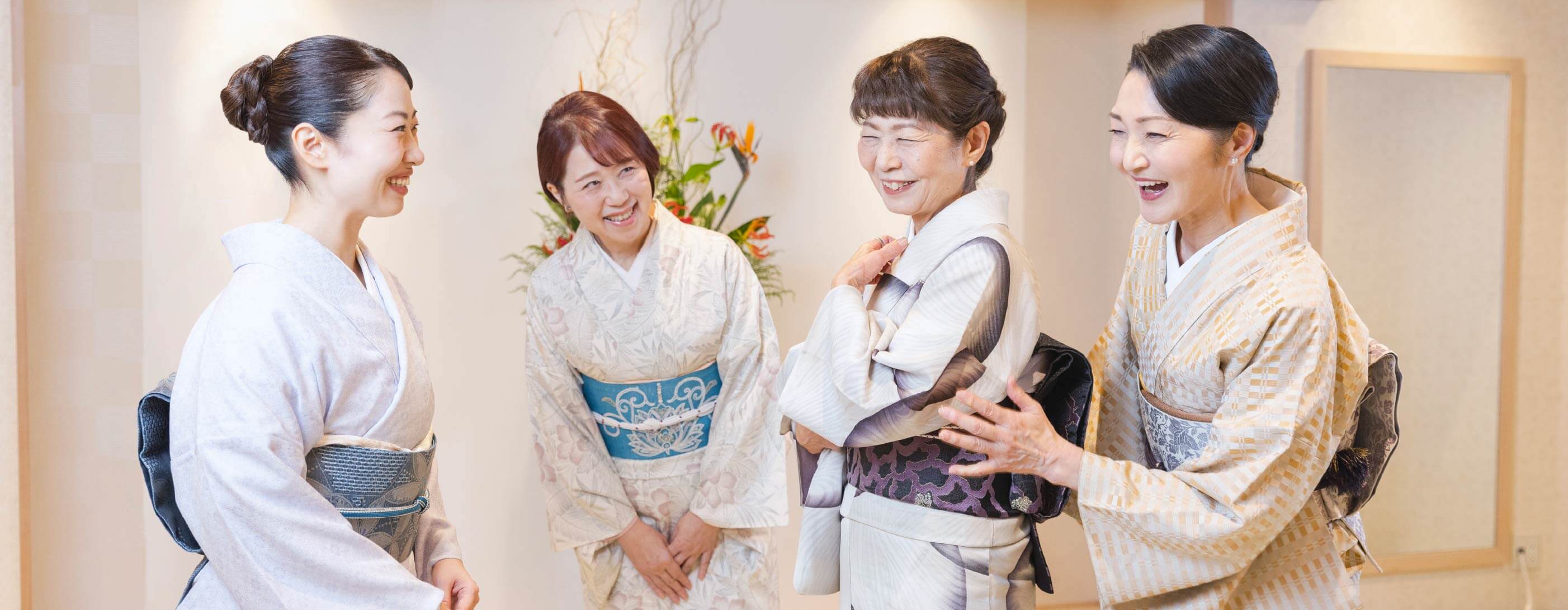 着付けの技術はもちろん、知識も得ることができてよかった。きもののことが知りたい、着てみたいと思っている人は割と多く、そんな方たちとの話題も豊富になりました。これからいろいろな場所へきものでお出かけするのが楽しみです。