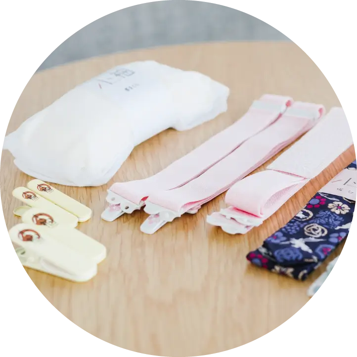 きもの・帯・長襦袢、着付け用の和装小物が必要となります。お持ちの方はぜひご持参ください。 初回の着付け体験で必要なものを説明いたします。その際に小物のご購入も可能です。