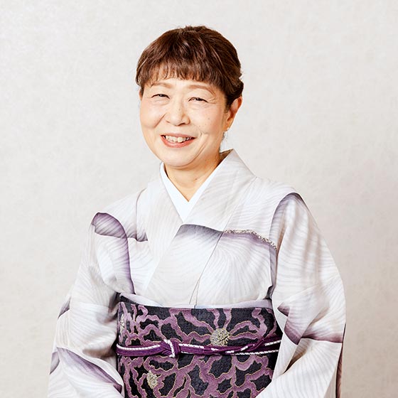 仕事で海外に住んでいた時、きものを着られるか聞かれ、着られない自分が恥ずかしく、日本の文化も深く理解したいと思い、始めました。教室に通ってよかったことは、自分で着られるようになったこと。きものに親しんで世界が広がりました。