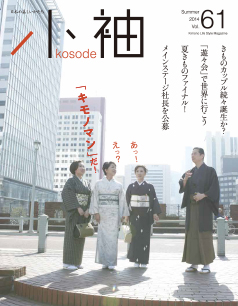表紙に「キモノマン」が登場した今号の小袖本誌。男きもの専門店「SAMURAI」オープンをはじめ、「遊々会」「夏きものファイナル」「メインステージ社長公募」など話題満載&見応えたっぷりの一冊となっています。