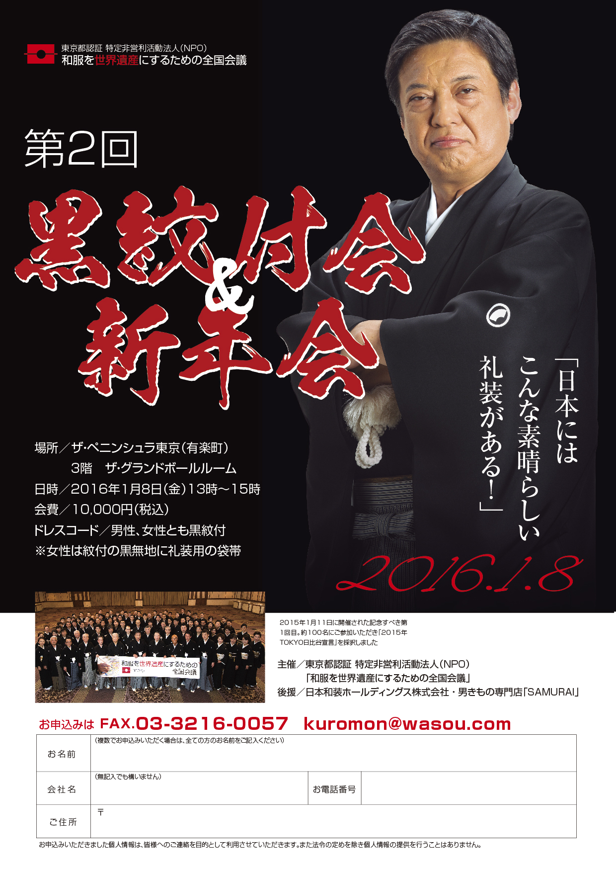 2016年1月8日(金) ザ・ペニンシュラ東京(有楽町)で第2回黒紋付会&新年会を開催いたします。