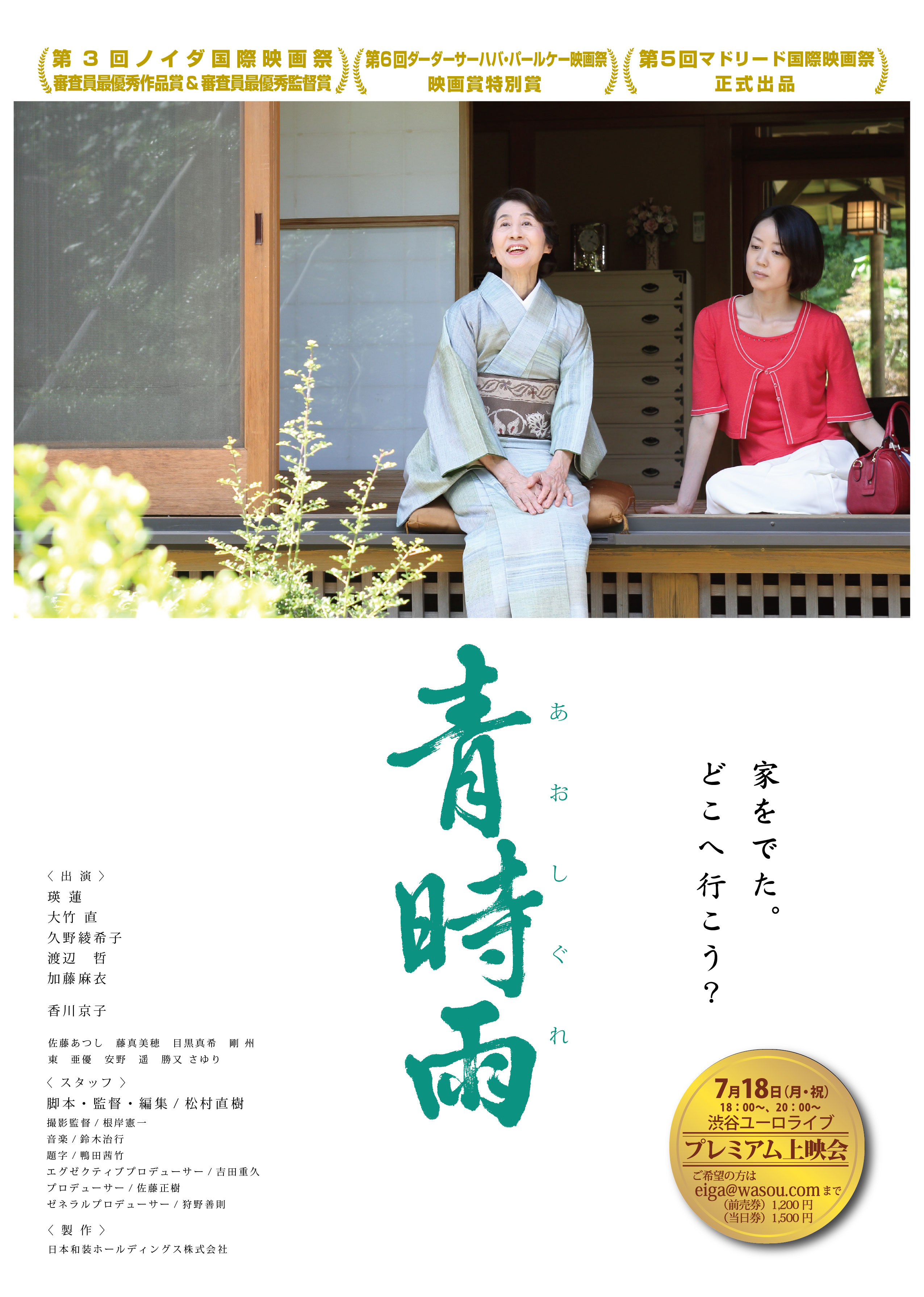 7月18日(月・祝)に渋谷のユーロライブで、当社製作の映画「青時雨」のプレミアム上映が決定しました。